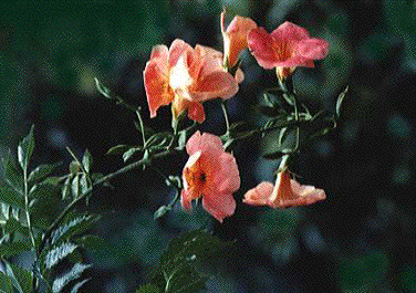 ノウゼンカズラは凌霄花、かずらの名が示すごとく蔓性の植物で他の植物や支柱に
