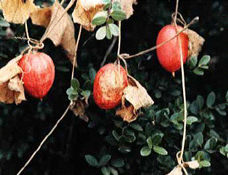 す。 まさかこんなレースで編んだような花が真っ赤な果実を結ぼうとは想像も