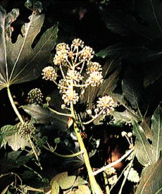 向けてみましょう。それは晩秋から初冬にかけて花を咲かせるヤツデです。