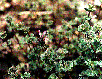 日当りの良い道端や、風避けの生け垣の際で日当りの良いところではホトケノザが