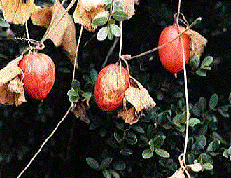 ましたが、果実はまだ黄色に熟れてはいませんでしたが、大きさはカラスウリの倍は