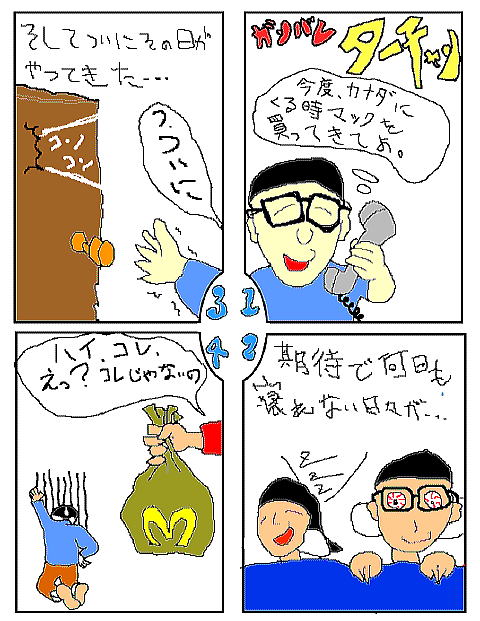 カナダ バンクーバーで友達になったワーホリ仲間「ひろき」が書いたマンガです。カナダ バンクーバーに住んでいたとき日本の友人にMacを買ってきてもらうまでの間、夜も寝られなかった時のことを描いてくれました。