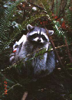 あらいぐま?人になれてえさをもらいに来ます。カナダでは自然はそのままの形で残すのが基本なので「えさをあたえるな!」というのが正しいマナーです。