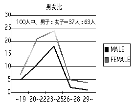圧倒的に女性が多いのにはおどろきました。短大、4大卒業の20〜22才がピークです。日本が就職氷河期で就職浪人なのでしょうか?