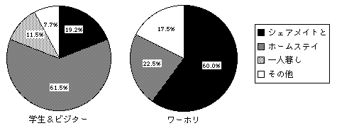 やはり留学生は入学するときにセットでコーディネートされるのが普通なので、圧倒的にホームステイが多いようです。60%以上を占めています。英会話の上達に
