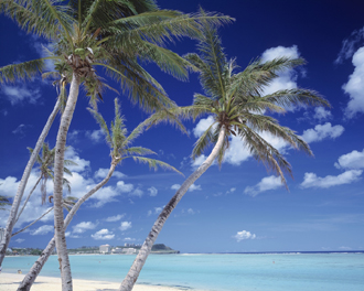 グアムは年間平均気温26℃の常夏アイランドです。大きく分けると、乾季(11〜5月)と雨季(6〜10月)があります。ショッピングやマリンアクティビティ、ナイトスポットなど、子どもから大人まで幅広く楽しめるのがこの島の魅力です。陽射しが強いので、サングラスや日焼け止めを持参することをお勧めします。また、ホテルやレストランでは冷房が効いているため、薄手のジャケットやカーディガンを用意しておくと重宝します。