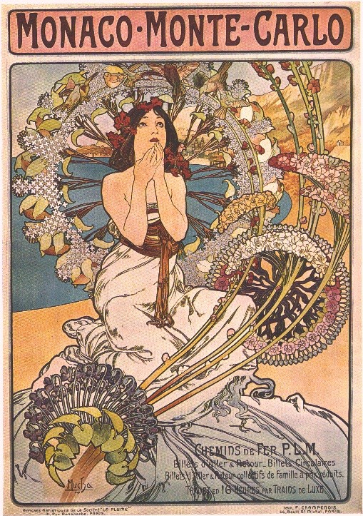 アールヌーボーの花、と呼ぶにふさわしいゴージャスでロマンチックなポスター/イラストで知られる画家。