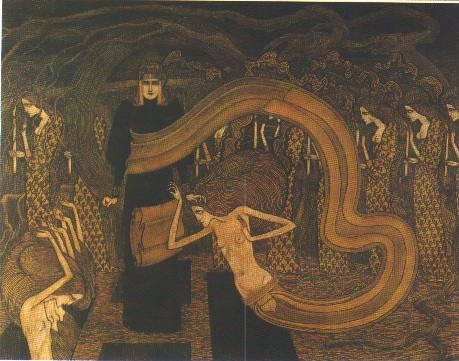トーロップの絵にはジャワやケルトの意匠、アンソールやモリスやロゼッティの影響が複雑にからみあっている。その上好奇心旺盛で新しい技法の開発に貪欲だったので、一つの形式で捕らえる事が出来ない。それにしても私にはデッサン力の不足や人物像の浅さが目につく。幽霊のような女性像も好きになれない。