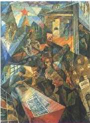 第二の部屋は、フォーゲラーがナチスに追われて旧ソビエトへ逃げ、そこで描いた油絵作品群です。この部屋は旧東京駅の赤煉瓦の壁を使ってあり、作品にぴったりでした。この作品群は第一の部屋とはまったく異なる、ロシア構成主義的なポスター様の油絵ばかりです。当時のプロバカンタ用に雑誌の口絵やポスターに使われたものと思われます。アバンギャルドといえば言えますが、大きな油絵にもかかわらず小さく区切られてちまちまとした印象を与えます。そして、当然にもロマンチックな香りはどこにもありません。こうした作品も描けたんだ、と驚くとともに、前の部屋とのあまりの断絶に無惨な気持ちになるのは否めません。