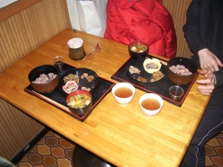 | 五穀玄米の日々 去年の夏に急性腸炎で入院したのをきっかけに、玄米菜食を始めました。魚介類は食べるのでいわゆるベジタリアンではなく、塩はたっぷり採るのでいわゆる病院食でもありません。その見本となるのは右の健康食レストランのメニューです。 これを最初食べたときにはびっくりしました。玄米はうまいのですが、オカズらしいオカズがないのです。 このメニューが生涯続くと思うと、気が遠くなってしまいます。 |