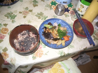 | 自宅ではこんな形です。 ご飯=無農薬玄米(契約農家から共同購入)・小豆・餅粟・はと麦・丸麦など(自然食品店、生協で購入、すごく高いのが悩みの種)一日一合。 おかず=自家製無農薬野菜中心に煮物・漬物・温野菜など 白米・肉類・砂糖・合成調味料などがタブーになります。 もともと魚介類中心の食生活だったので特に違和感はないのですが、メニューに変化が乏しく時々寂しくなります。寿司が食べたい。 |