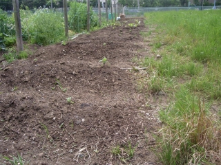 | 左は最近借りることが出来た「第二農場」です。 幅一間の細長い土地で、やっと半分を農地にしました。(細長いのは除草剤を撒かれていない部分を選んだから) ここにはヤーコン・ズッキーニ・サツマイモ・シシトウ・ナスなどを植えました。残り半分を開墾すれば、米を除きほぼ自給自足の生活が出来るかもしれません。 |