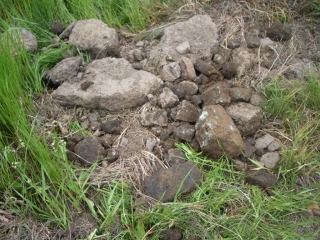 | しかし本当に大変なのは開墾がガレキとの闘いだということです。 一メートルほると、大小のガレキが山のように出ます。この土地はもともと水田で、そこに雑多な土石を投げ込んで固めたところです。 コンクリートブロックが出るということは建築廃棄物なども混ざっているのでしょう。 このガレキはスコップや鍬を跳ね返し、こちらの手にダメージを与えます。一メートル掘るごとに巨石の掘り出しや砂利の掻き出しがあるので仕事が進みません。両手に豆が出来てしまいます。 |