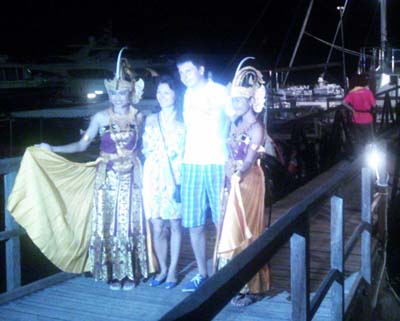飛行機の出発までまだ時間があったのでクタ・セラタンの港へ。フェリーの客たちがダンサーと記念撮影していました。(上) 空港へ入るとロビーのあちこちに客たちが座り込んでいます。椅子が足りないせいもあるんだろうけど、基本的に暑いバリでは道端に座り込むのが普通のスタイルのようです。(左) 帰りの便は最新型ボーイング787だったようで、座席もフルフラットになるものでした。これは快適でした。(左下)ファーストクラスはさらにボックス席になっていました。(下) |