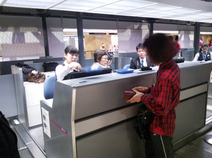 以下青字はツイッター:明後日からバリだけど、なーんも準備してないよ。だって遊びに行くんだもんね。持っていくものといえば半袖・ハンズボンの服だけ。あと、残り物のドル札ね。300ドルくらいあった。アメリカン・ドルって世界中で使えるもんなあ。 午前二時ころの地震で起きてしまった。でもがんばって寝なおして現在6時。台風はかなり南を通っていて、飛行機は飛ぶらしい。早めに用意して成田に向かう予定。(左はインドネシア・ガルーダ空港カウンター・外は嵐)