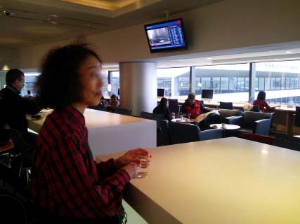 成田空港、スカイクラブから通信中。ビジネスクラスだからねっ。 なんとマックだよ。操作わかんねえ。(並んでいるのは@MAC) 台風がそれてくれて飛行機は飛ぶらしい。 ばたばたしながらバリへ向かうよ。(右は成田のスカイクラブ) |