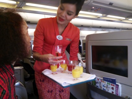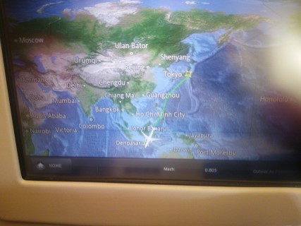 ガルーダ空港のドリンクサービス。かみさんはワインを、私はビールを頼む。インドネシアのビール「ビンタン」が出てきた。 眠くなるまで時間があるので私は専用ディスプレイで映画やビデオを見た。映画はジョニー・デップの最新作『ローンレンジャー』、ビデオはマイケル・ジャクソンのライブでした。(下) |