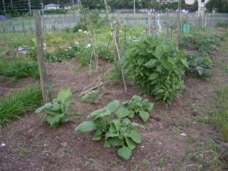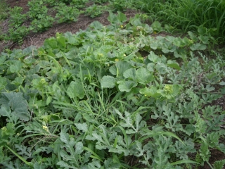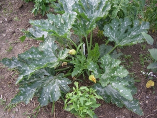 第二農園で最初に収穫出来たのはズッキーニでした。白い病班は出ましたが大きく育ち、次々と果実を実らせました。 | |