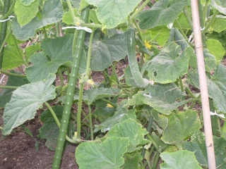 キュウリは今年もたくさん採れました。 漬物にしたりサラダにしたり、夏中楽しめます。 |
