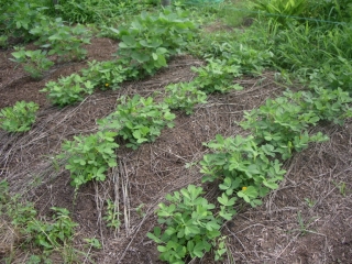 初夏。 第二農園に野菜が育ち始めた。手前はヤーコン、その先には各種の芋があります。 これからそれぞれの野菜がちゃんと収穫できるか、不安と期待の時間が過ぎます。 |