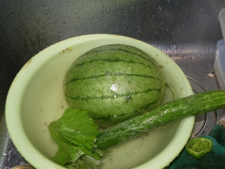 自家製西瓜第一号です。 なんだかワクワクするけれど、ちょっぴり不安もあります。 西瓜甘いかしょっぱいか? |