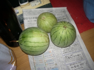 西瓜は合計6個取れました。 後半になるにつれ甘くなり、贅沢な楽しみを感じる夏になりました。 小さいのはそれなりですが、これもご愛嬌。 |