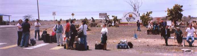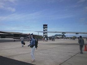 12時40分、サンタクルス島の北、バルトラ島にあるガラパゴス空港に到着。サボテンと灌木の荒野のような島です。武装した迷彩服の軍人たちが乗客を威嚇しています。あんまりいい気持ちはしません。西部劇の牧場のような木造平屋の空港施設に入ると、外国人観光客は長い列を作っていました。