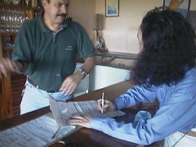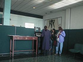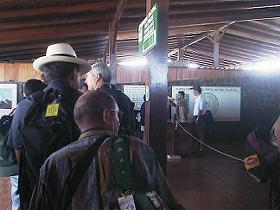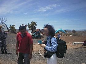 じわじわと進んで口蹄疫予防のマットを踏み、入島カードを提出します。荷物検査があり、その後一人100ドルの入島税支払いがあります。いっきに財布が軽くなりました。代わりに「ガラパゴス国立公園入園者証」を貰います。ナンバーは134373番でした。95年版の「地球の歩き方」で6万台だったと書いてあるので、6年間で倍以上になったわけです。しかしそれだと年間1万人程度で、千葉にある東京ディズニーランド(一日5万人だとか)なんかに比べるとほんのわずかな数です。もう一つの空港(サン・クリストバル島)もあるので実数はもっと多いのでしょうが、入島が厳しく制限されている様子はわかります。