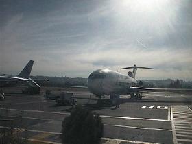 朝の大通り、ディエス・デ・アゴスト(9月10日)通りにはトロリーバスが走っています。それを追い越し、追い越されながら飛行場に着きました。ガラパゴス行き飛行機は9時半出発。まだずいぶん時間があります。待ち時間にディエゴさんといろいろ話しました。飛行機からエクアドルの高峰コトパクシやチンボラソが見えるか、という話から、登山したことがあるか、とかスークレはいつ廃止されたのだ、とか主にかみさんが質問しました。その質問や応えを私が通訳します。スークレはエクアドル独立の英雄ですが、その個人と通貨がごっちゃになって、結局「英雄のスークレはずっと昔に死んだが、通貨のスークレは去年死んだ」という話になりました。