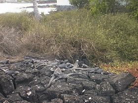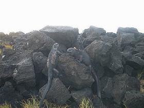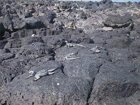 黒い溶岩や灰色の岩の上に大小無数のイグアナが甲羅干しをしていました。近づいても逃げる様子はありません。