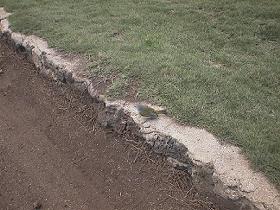 左:バルサ材の小屋 右:作りかけ小屋のセメント土台