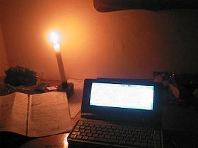 午前2時にかみさんに揺り起こされました。自分だけ寝ているのがずるい、と言うのです。そんな事言われても困ります。そして彼女はまた寝てしまいましたが、私は眠れません。ベッドの上で何度も寝返りをうっていましたが、4時になってとうとう起き出しました。テーブルにあった蝋燭に火をつけて、モバギを打っていました。