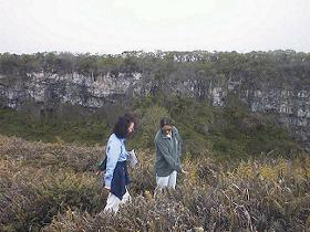 それから二つのカルデラ湖を観察しました。深い穴の縁に立つと、足がすくみます。それから火山性の洞窟に入りました。富士山の麓にあるものと似ています。観光化はほとんどされていませんが、適度にライトアップされていてなんとか歩けます。天井からも下からも水が湧き出して、頭にポタポタあたります。