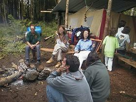 焚き火を前に、コーヒーを飲みながら主に日本の話題をかわします。ここで私たちは日本の教育と子どもの現状を語りました。