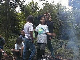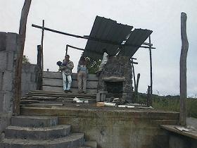 誕生会は二つのキャビンを建築中の、ジャングルの間の畑の中の仮小屋で行われていました。三組のカップルと子どもたち、合計12人のグループです。キャビンの一つはもう屋根まで出来ていましたが、バルサ材という極軽量の木で出来ているので、ボール紙のように頼りなく感じました。8畳ほどの部屋の中で男女12人が雑魚寝した、と話していました。もう一つのキャビンはコンクリートの土台と水回り、カマドなど基礎部分だけが出来ていました。こちらは頑丈そうです。しかしいつになったら出来上がるのか見当もつかないそうでした。なんとなく「三匹の子豚」の話を思い出しました。