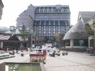 数分走るとホテルピアノ、というよりリゾートセンターの全景が見えました。中世の城のような構造です。ピアノ城を頂点に、ゲーセンや商店、レストランなどがスロープを埋めています。温泉は手前にあったので、さっそく入ります。私は女房がタオルを持っているものと思っていたので自分では持ってこなかったのですが、そこで一騒動ありました。