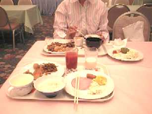 朝食は8時頃、ホテルの中の大広間で、和洋のバイキングです。