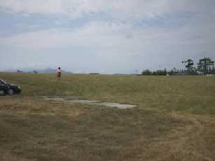 右手に湖水が見え、パーキングの表示がありました。ファミリアとデミオは2台そろってパーキングの入り口に飛び込み、スカGはドヒューンという爆音をたててすっ飛んでいきました。