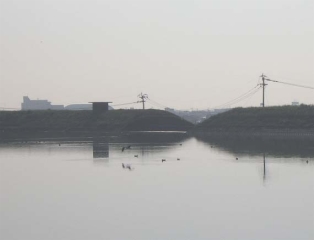 ◆クリークの上に水鳥が遊んでいます。中央左よりに影を映しているのは青鷺です。巨大な羽を広げて、私の足元から飛び立ったのですが、カメラをオンにして構えた時にはすでにクリークの反対側まで飛んでいってしまいました。 | |||