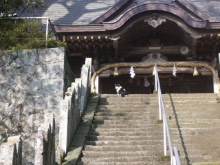 ◆八幡大社の階段に猫が日向ぼっこをしています。 | |||