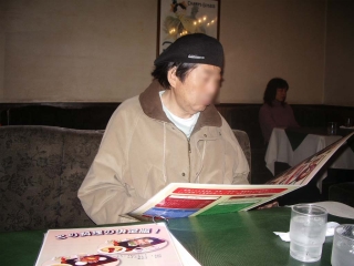 | ◆ノートンのシステムチェックが始まって、いつ終わるとも知れないので早めに夕食に出かけました。 前にも来た近所のレストランです。ここは暗くて陰気な店だったのですが、オーナーが変わって明るくなりました。 二人とも同じ和風定食を頼みまして、右手が不自由になったナンジーさんはフォークで刺身を食べていました。自分でも苦笑していました。 |