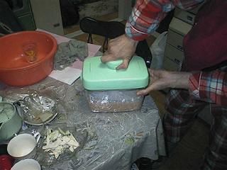 | 圧力をかけて冷蔵庫に保存します。速成味噌は2ヶ月くらいで食べられます。 | ||