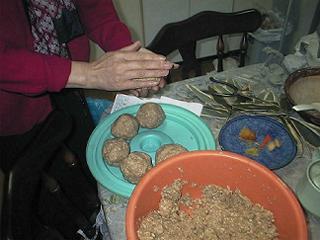 | 5センチほどの団子にします。(これは空気抜きの過程なので、徹底して上から強く押し込む作業をするのなら省略してもかまいません) | ||