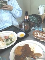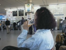 | かみさんは待ち時間にビールを飲みます。かなり寒かったので、あとで「熱燗にすればよかった」と言っていました。私は熱い缶コーヒーを飲みました。 |