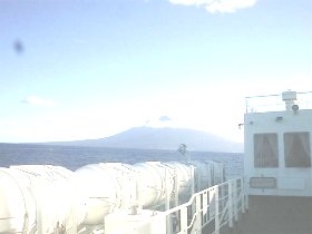 利尻富士が見えてきました。この時点では山頂が覗いていました。 | |
