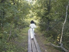 | 周囲をぐるりと一周する遊歩道を歩きます。途中にあった木橋で撮影。 |