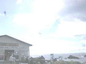 仙法師岬公園は波の荒い岸辺の岩の中です。 空にはカモメが舞い、陸では生うにを売っています。 |