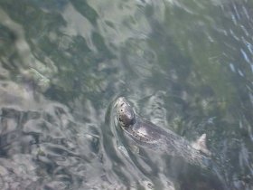 | アザラシたちはのんびり泳いでいるように見えますが、本当はどうなのでしょうか? 仲間のいる、広い北極圏へ帰りたいのではないかな・・・ |