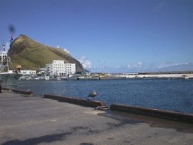 5:00過ぎ、利尻島表玄関口、鴛泊(おしどまり)港に到着。 そろそろ夕暮れが近づいています。バスの時刻表を調べると、もう5時台のものはありません。タクシーだと高そうだし、どうしたものかと思っていると、かみさんが「宿から迎えに来させればいいじゃない」と言って電話をかけました。 自宅からかけた電話では「バスで来てください」ということだったので、どうなるのかと思っていたら軽のワンボックスが迎えに来ました。 汚い車で、そのうえ運転しているのは疲れたような高齢男性で、なんだか気の毒になりました。 |