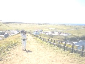 断崖の下では波が騒いでいます。この岬は北方植物の宝庫でもあるそうですが、半分枯れかけているのでよくわかりません。 | |
